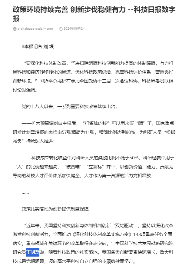 “這些年,科技體制改革始終圍繞促進(jìn)科技和經(jīng)濟(jì)結(jié)合、調(diào)動科研人員積極性這條主線。”丁明磊說。