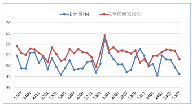 圖:EPMI與研發(fā)活動趨勢圖