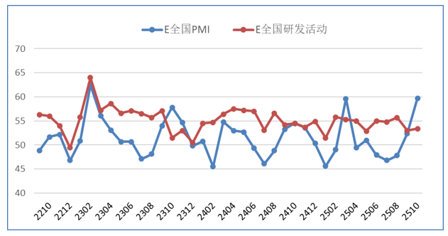 圖:EPMI與研發(fā)活動(dòng)趨勢圖