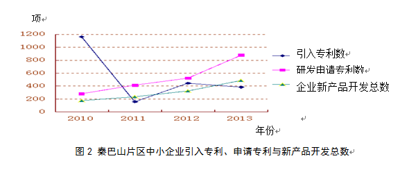 這些數(shù)據(jù)表明,近年來秦巴山片區(qū)內(nèi)的中小企業(yè)技術(shù)創(chuàng)新水平有了很大提升,在創(chuàng)新中求生存促發(fā)展已成為秦巴山片區(qū)內(nèi)中小企業(yè)的共識(shí)和普遍行為。