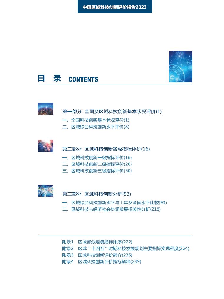 報(bào)告以指數(shù)評(píng)價(jià)、指標(biāo)分析等方法為支撐,以圖表展示、指標(biāo)呈現(xiàn)、區(qū)域分析為主要形式開(kāi)展研究,報(bào)告2023內(nèi)容主要包括:全國(guó)及各區(qū)域科技創(chuàng)新基本狀況評(píng)價(jià)、區(qū)域科技創(chuàng)新各級(jí)指標(biāo)評(píng)價(jià)和區(qū)域科技創(chuàng)新分析3個(gè)方面,系統(tǒng)分析2021年我國(guó)31個(gè)地區(qū)在科技創(chuàng)新的主要方面的發(fā)展水平、優(yōu)勢(shì)和不足,系統(tǒng)反映各地區(qū)的科技創(chuàng)新發(fā)展特點(diǎn)。