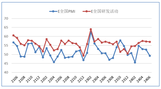 圖:EPMI與研發(fā)活動趨勢圖